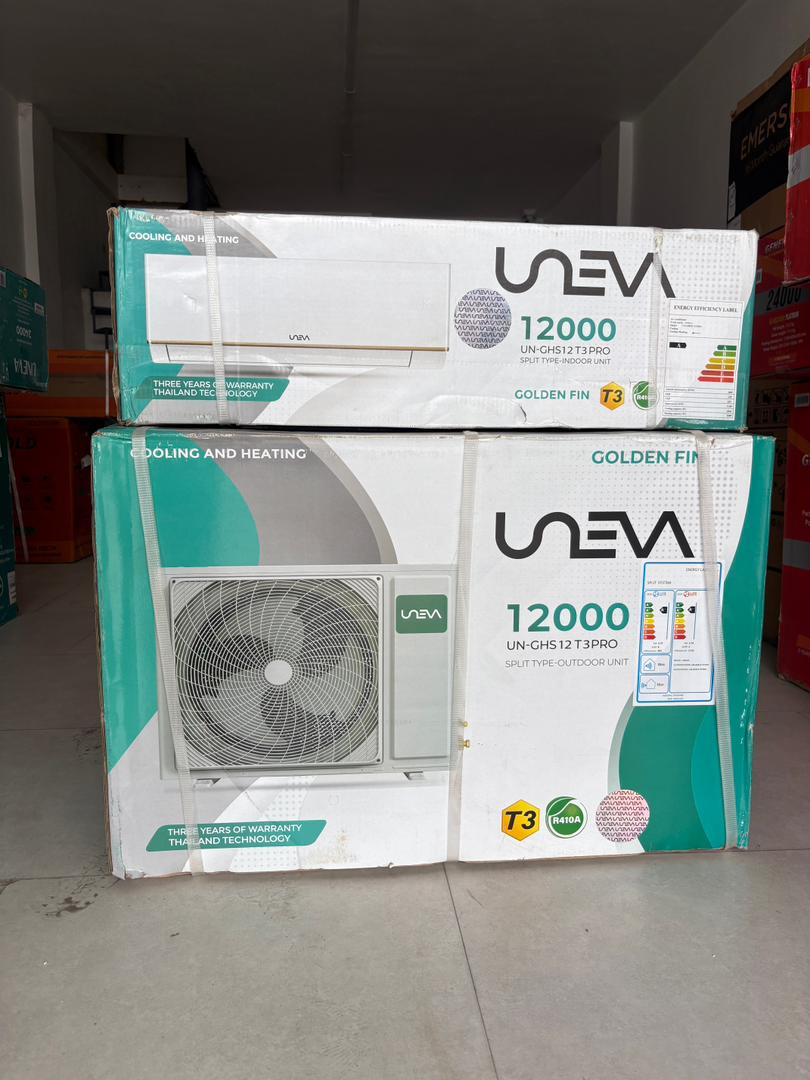 مشخصات فنی UN-GHS12 T3 PRO • ظرفیت سرمایشی: حدود ۱۲,۰۰۰ BTU/hr برای فضاهای کوچک تا متوسط مانند اتاق خواب یا نشیمن • ظرفیت گرمایشی: حدود ۱۲,۵۰۰ BTU/hr • نوع کمپرسور: روتاری، برای کارایی مناسب و عملکرد پایدار•